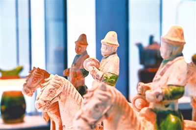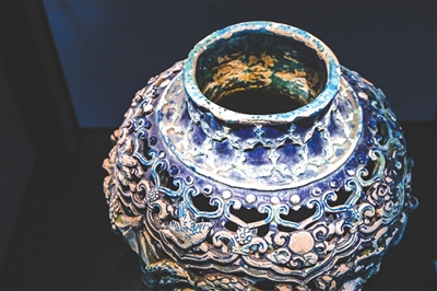 长治琉璃艺术历史悠久,制作工艺源远流长。展陈内,在我市出土的战国时期蜻蜓眼琉璃珠引人注目,它以绿色玻璃为胎,表面嵌白、蓝色相间的多层圆环眼饰,形似蜻蜓的复眼,俗称“蜻蜓眼”,是中国古代原始玻璃器中一种最经典的类型。循着历史脉络,汉代绿釉陶的质朴、唐宋三彩的灵动次第铺展,而明清琉璃更显工艺之精湛。琉璃在先,珐华承后。明三彩珐华镂雕人物故事罐通高40.53厘米,双层腹壁,腹部外层镂雕人物和树石纹饰,蓝白青紫釉色浓艳,立粉、镂雕等工艺巧夺天工,尽显匠人的匠心巧思。除了珍贵文物,展陈打破传统静态展示模式,以立体场景复原让文物“活”起来,全息投影技术将琉璃制作的八道工序生动呈现,从备料制坯到施釉烧窑,让古老的传统文化变得可感可触。