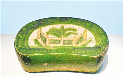 黄绿釉开光栏杆芭蕉纹豆形枕