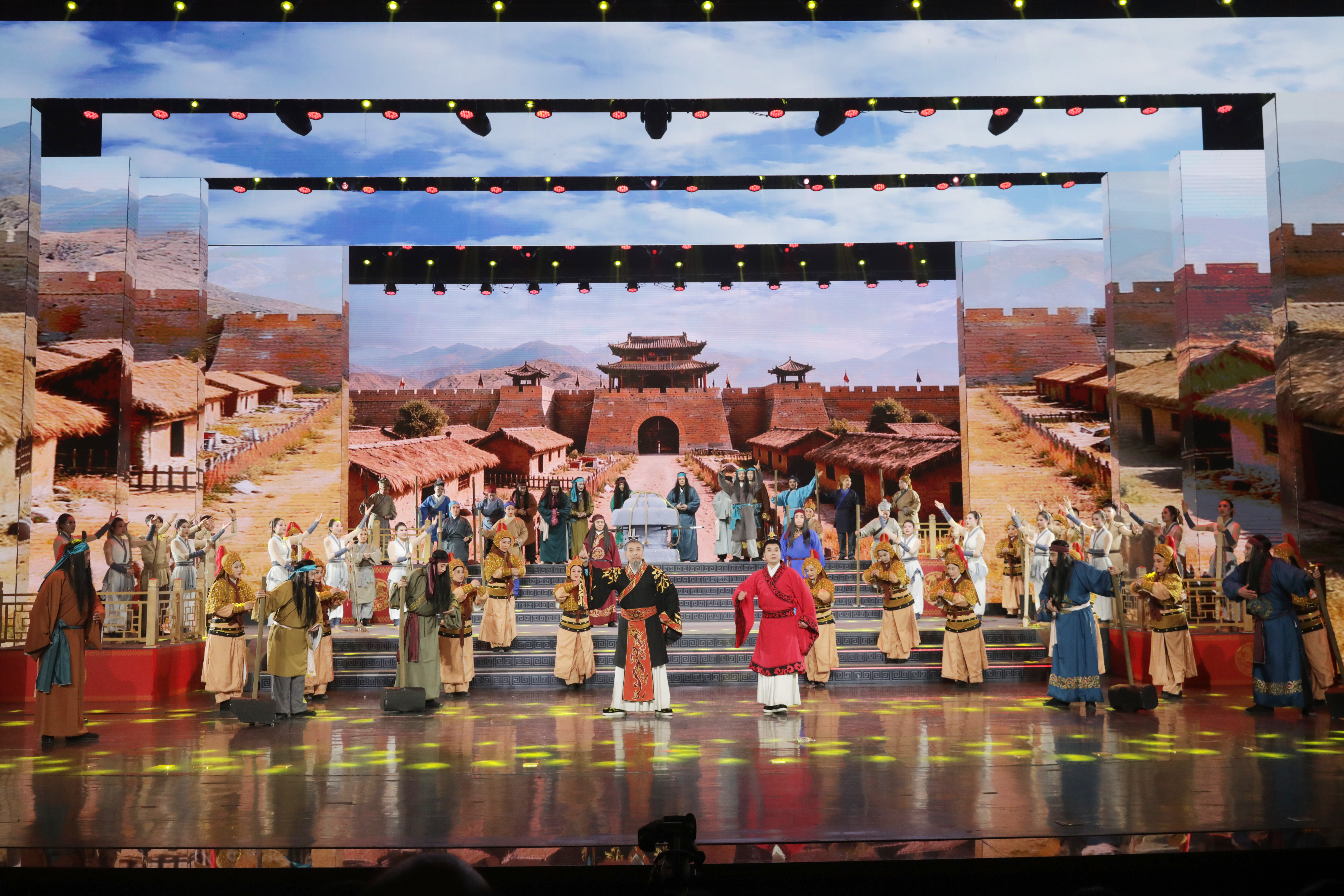 晚会在开场舞《骐骥驰骋迎新春》中拉开帷幕。节目以骏马奔腾为核心意象,演员们身着盛装,伴着动感旋律翩跹起舞,将马年的昂扬气势与长子人民奋发进取的精神风貌融为一体,瞬间点燃全场氛围。歌曲联唱《火热的祝福》,多首风格各异的歌曲轮番上演,既有对新年的美好期盼,也有对家乡的深情告白,嘹亮的歌声唱出了全县人民对美好生活的向往,让观众沉浸在新春的喜悦之中。音乐快板《精彩不断》节奏明快,台词朗朗上口,生动展现了长子县在经济发展、民生改善、文化繁荣等方面取得的丰硕成果。长子鼓书经典曲目《尧王教子》重磅登场,以传统说唱形式演绎尧王教子的故事,婉转唱腔与精湛表演相得益彰,让观众在传统曲艺中感受中华优秀传统文化的深厚底蕴。情景剧《丹朱筑城》以沉浸式表演,重现丹朱筑城的历史场景,通过细腻的叙事与富有张力的舞台呈现,唤起观众对历史的深刻记忆。