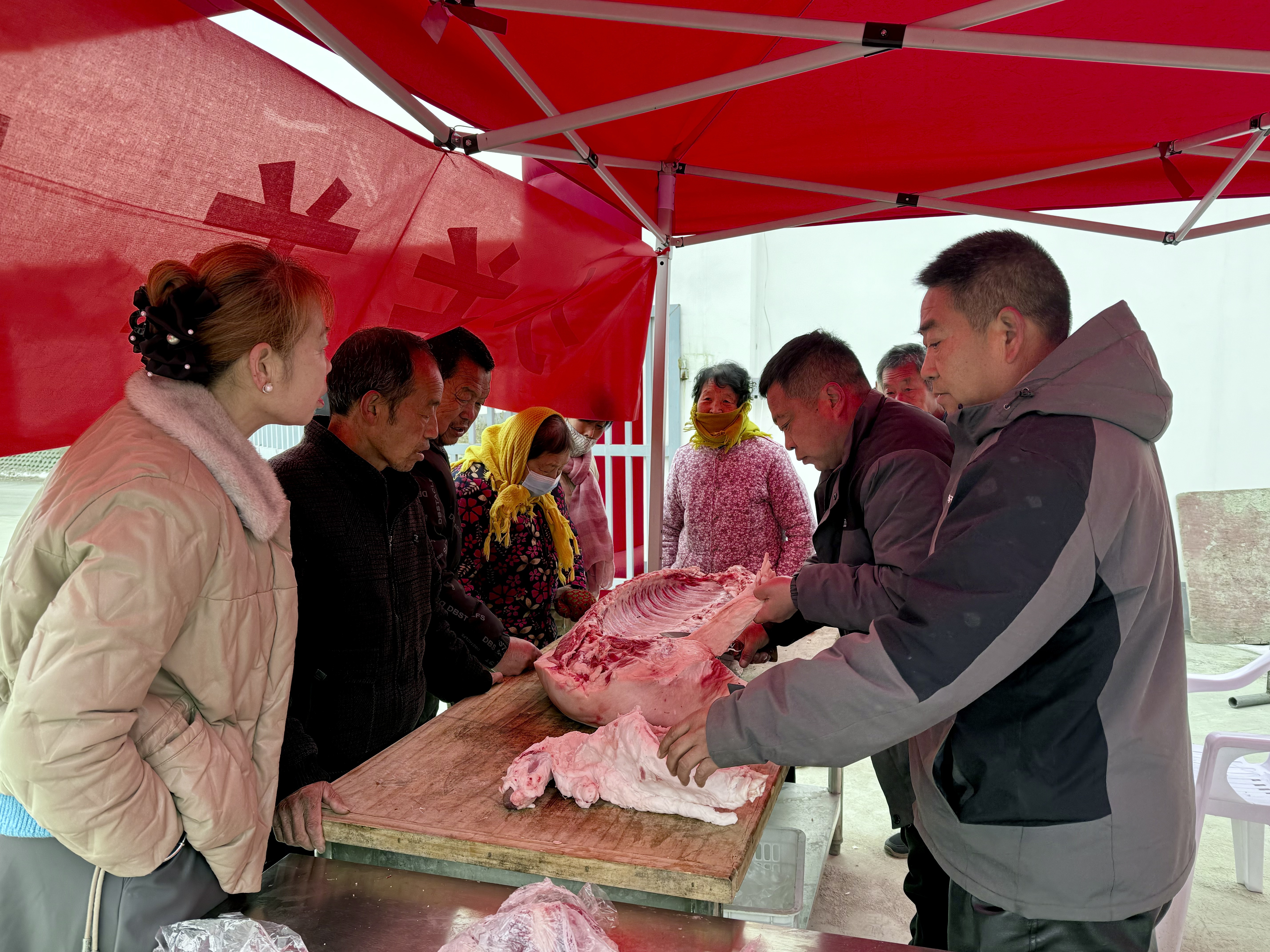 这座“变身”而来的年货集市,占地面积1000平方米,汇聚了食品、生鲜、日用、民俗等30余种品类、600余种商品,一站式满足村民办年货的各类需求。集市内,“购年货享优惠”“甄选八方好物 惠及全村乡亲”等红色横幅格外醒目,品牌粮油、特色礼盒、糖果副食、各类调味品整齐码放、琳琅满目,红彤彤的春联、寓意吉祥的灯笼点缀其间,与各类年货相映成趣,不仅丰富了商品种类,更烘托出浓厚的新春喜庆氛围。“真是太方便了!不用往县城跑,这里东西齐全、质量放心,价格还比外面实惠不少,这个集市办得太接地气、太实在了!”村民陈素兰提着刚选购的糖果和新鲜羊肉,脸上满是笑意,连连称赞。