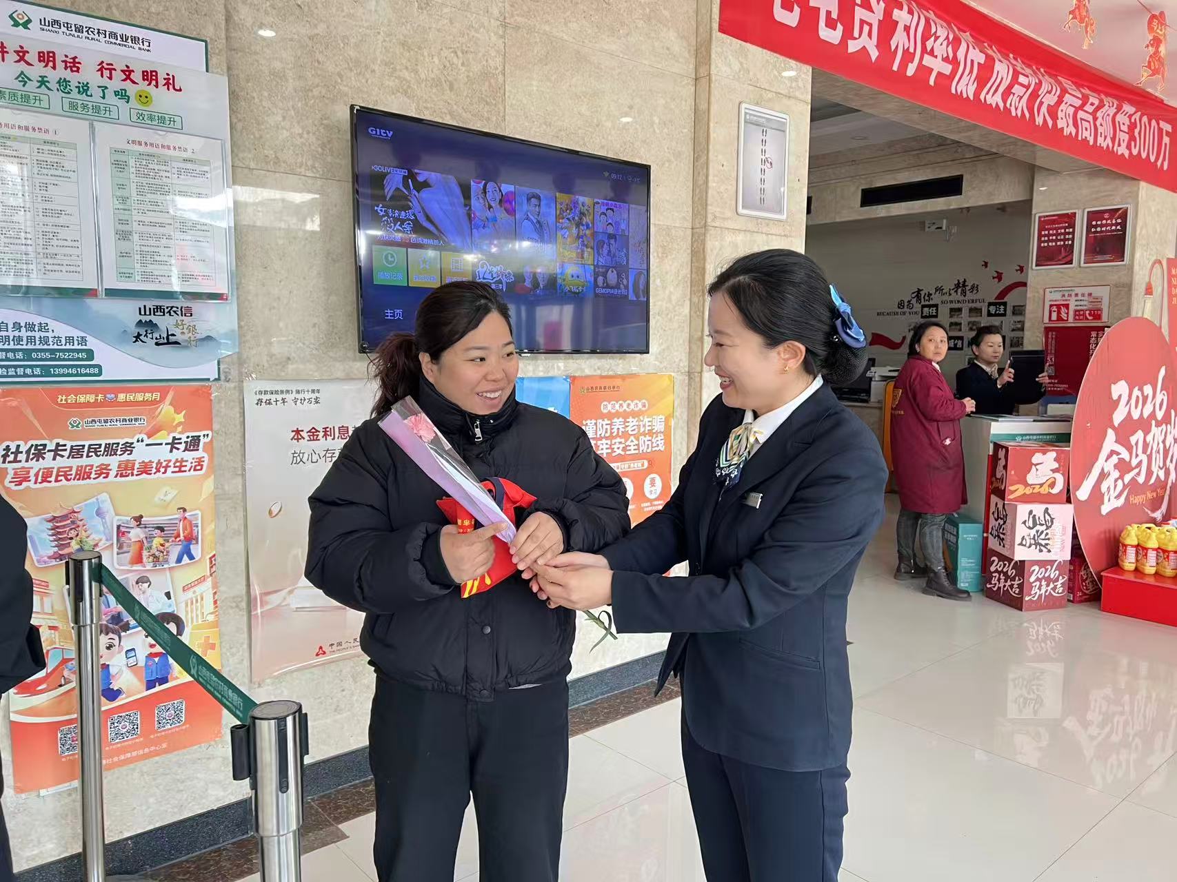 以花为媒,服务暖心。在赠送鲜花的同时,工作人员立足金融本职,向女性客户普及防范电信诈骗、存款保险、个人理财、信贷惠民等知识,耐心解答客户疑问,推介适合女性群体的金融产品,把优质服务与节日关怀融为一体,让金融服务更有温情、更贴民心。
